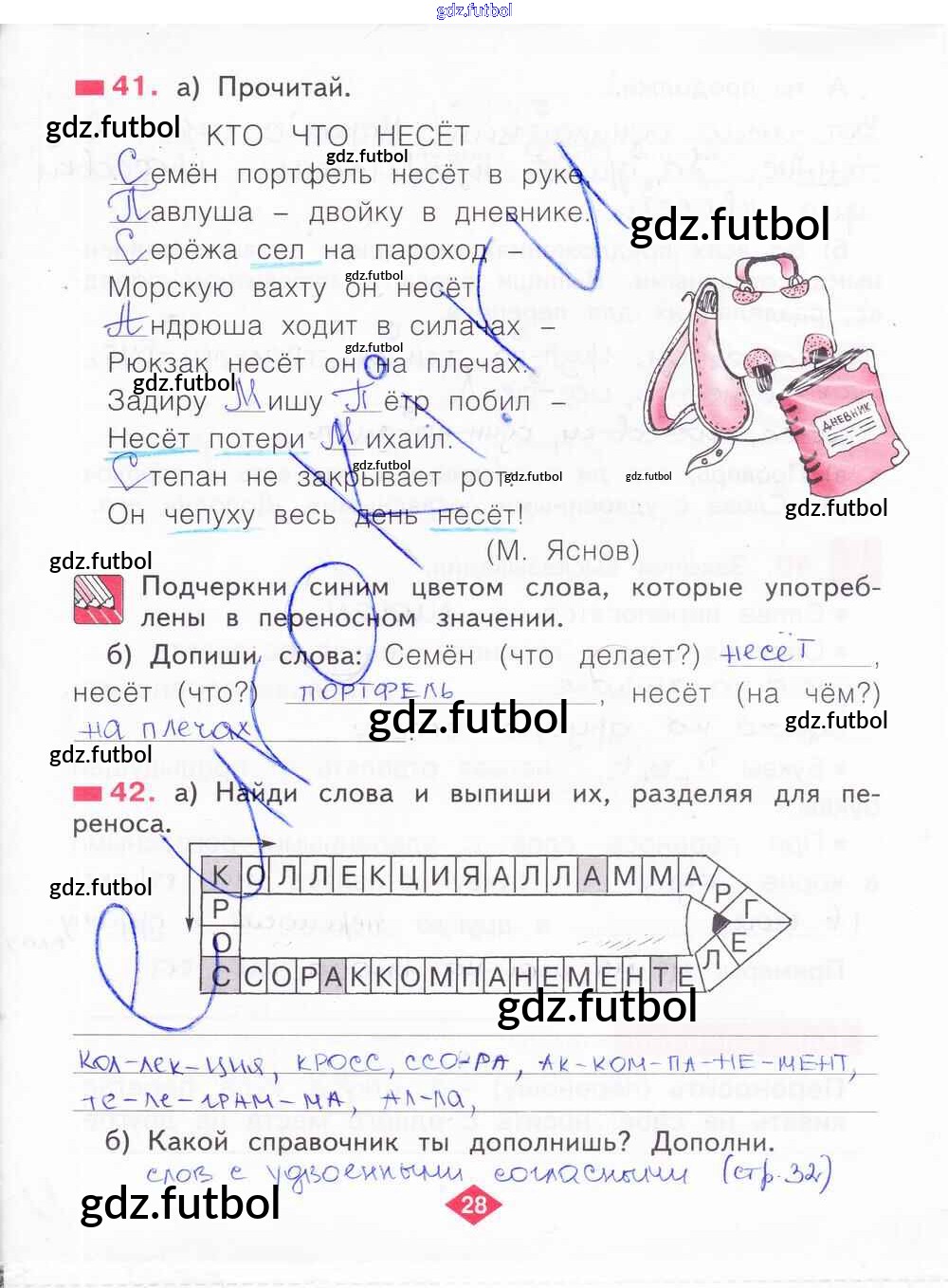 Готовые домашние задания по Русскому языку за 2 класс Яковлева Рабочая тетрадь 2015 ФГОС - Часть 1. Страницы 28