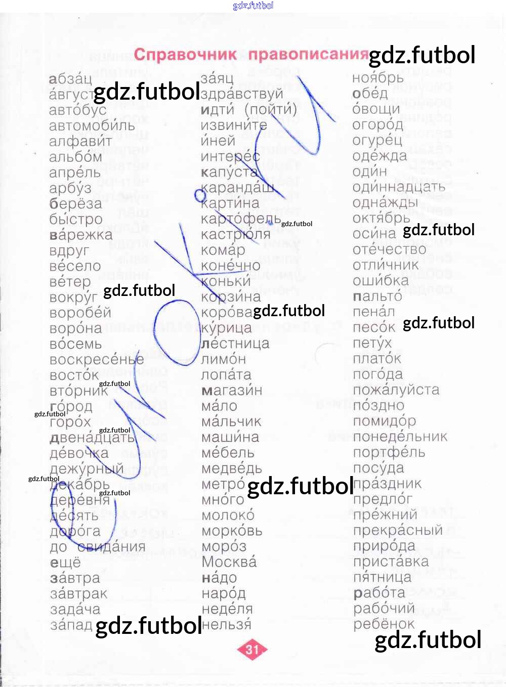 Готовые домашние задания по Русскому языку за 2 класс Яковлева Рабочая тетрадь 2015 ФГОС - Часть 1. Страницы 31