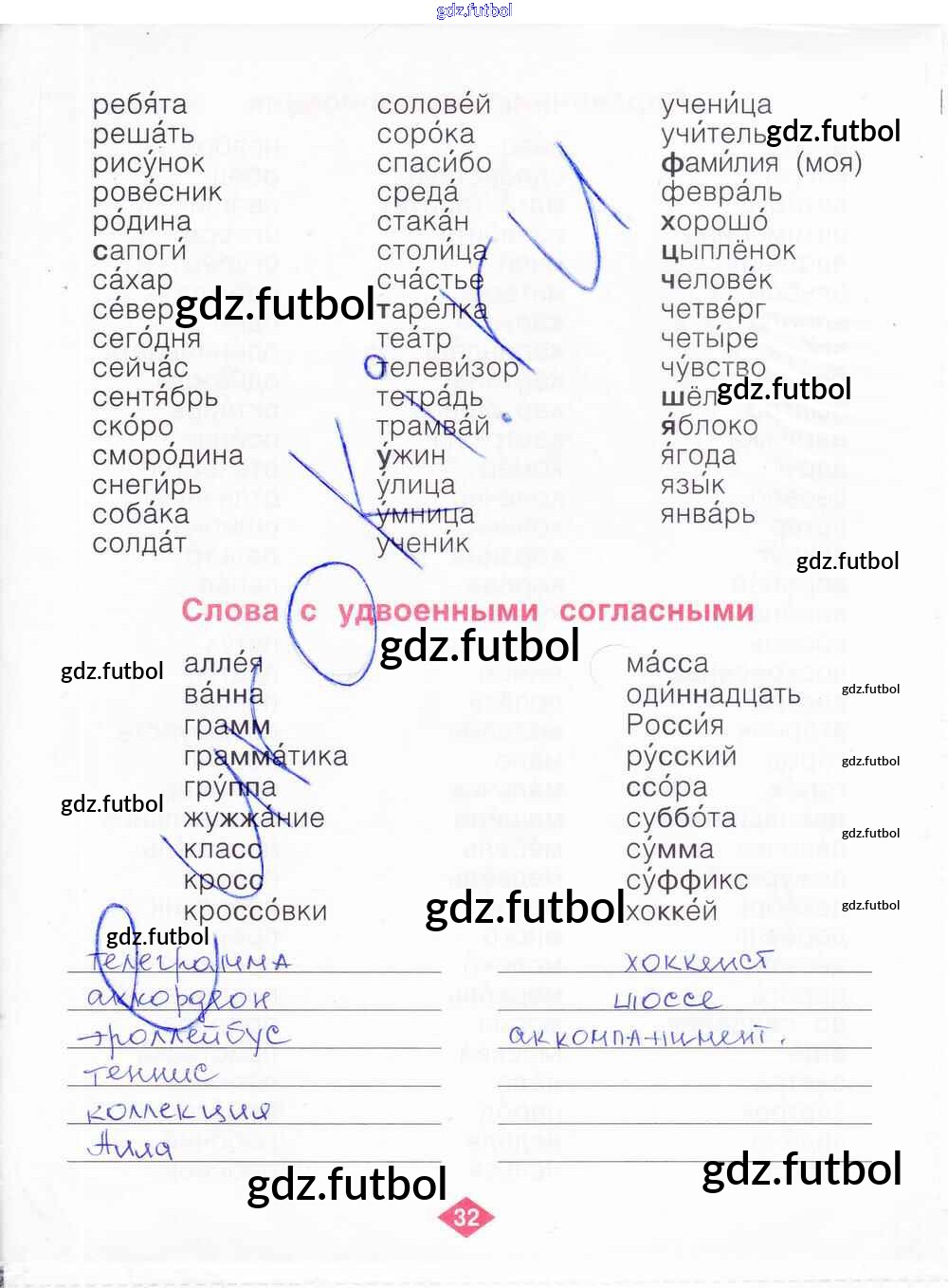 Готовые домашние задания по Русскому языку за 2 класс Яковлева Рабочая тетрадь 2015 ФГОС - Часть 1. Страницы 32