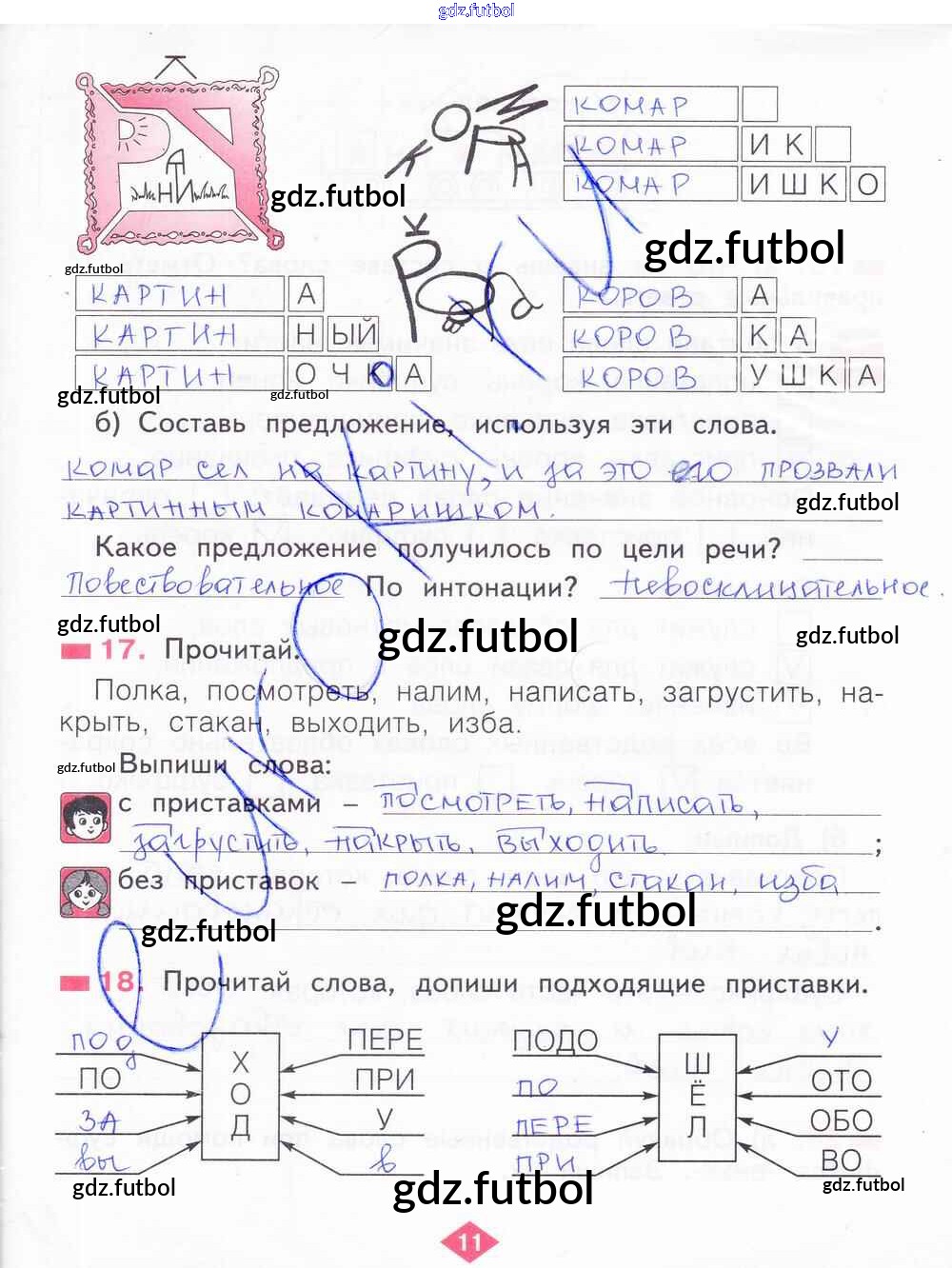 Готовые домашние задания по Русскому языку за 2 класс Яковлева Рабочая тетрадь 2015 ФГОС - Часть 2. Страницы 11