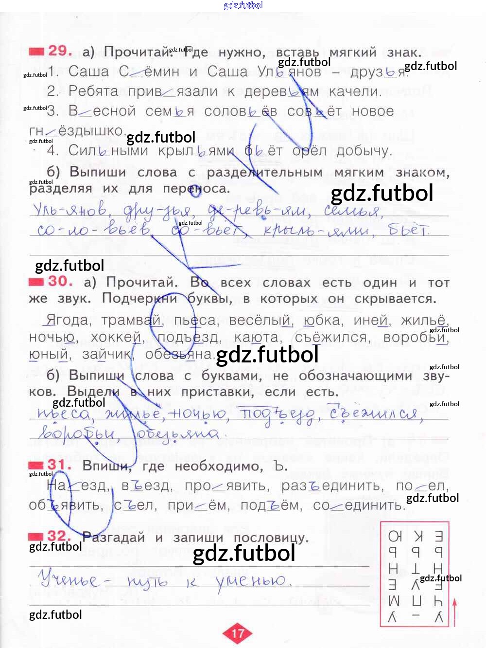 Готовые домашние задания по Русскому языку за 2 класс Яковлева Рабочая тетрадь 2015 ФГОС - Часть 2. Страницы 17