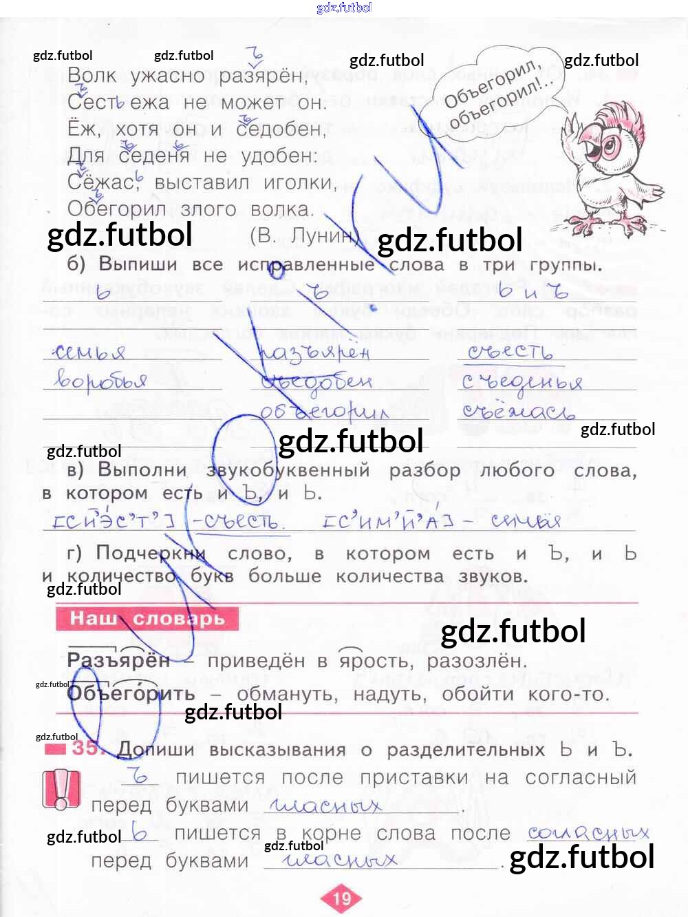 Готовые домашние задания по Русскому языку за 2 класс Яковлева Рабочая тетрадь 2015 ФГОС - Часть 2. Страницы 19