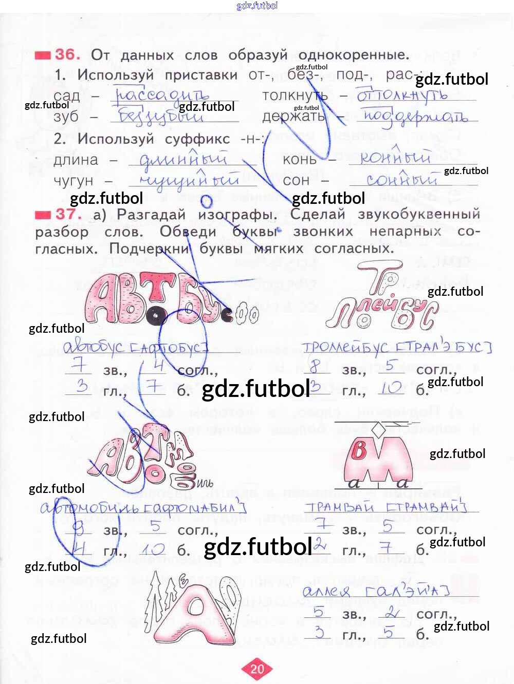 Готовые домашние задания по Русскому языку за 2 класс Яковлева Рабочая тетрадь 2015 ФГОС - Часть 2. Страницы 20
