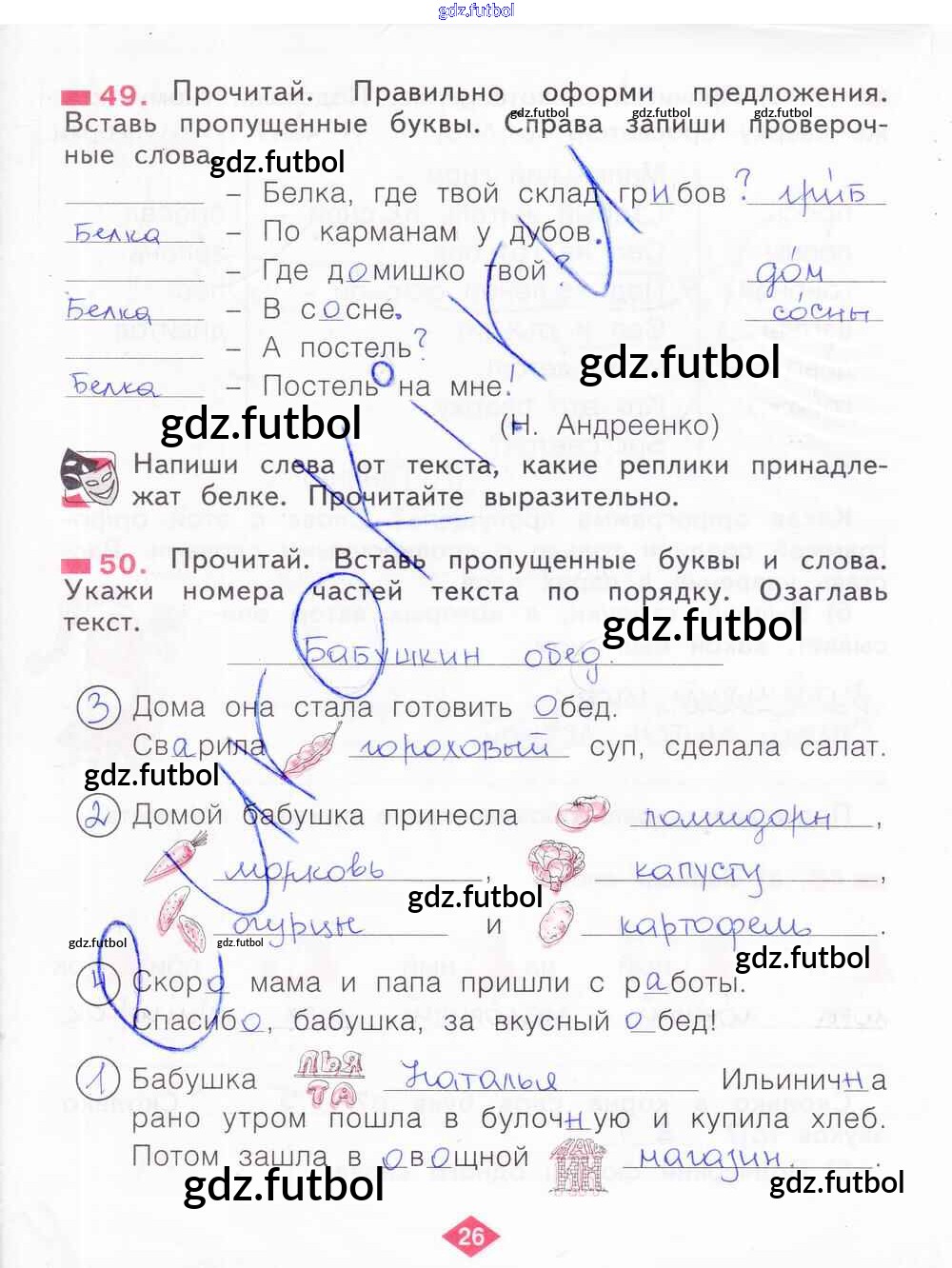 Готовые домашние задания по Русскому языку за 2 класс Яковлева Рабочая тетрадь 2015 ФГОС - Часть 2. Страницы 26