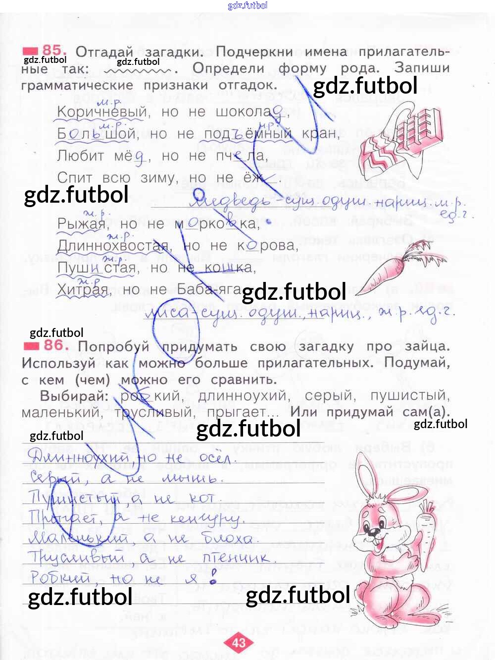 Готовые домашние задания по Русскому языку за 2 класс Яковлева Рабочая тетрадь 2015 ФГОС - Часть 2. Страницы 43