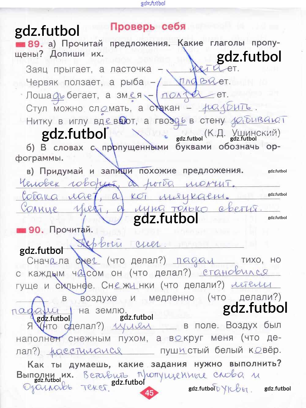 Готовые домашние задания по Русскому языку за 2 класс Яковлева Рабочая тетрадь 2015 ФГОС - Часть 2. Страницы 45