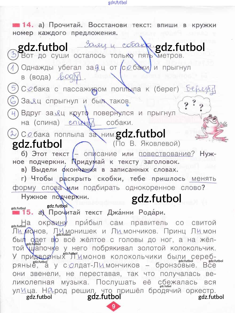 Готовые домашние задания по Русскому языку за 2 класс Яковлева Рабочая тетрадь 2015 ФГОС - Часть 2. Страницы 9