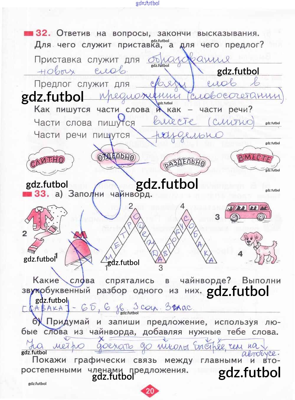 Готовые домашние задания по Русскому языку за 2 класс Яковлева Рабочая тетрадь 2015 ФГОС - Часть 3. Страницы 20