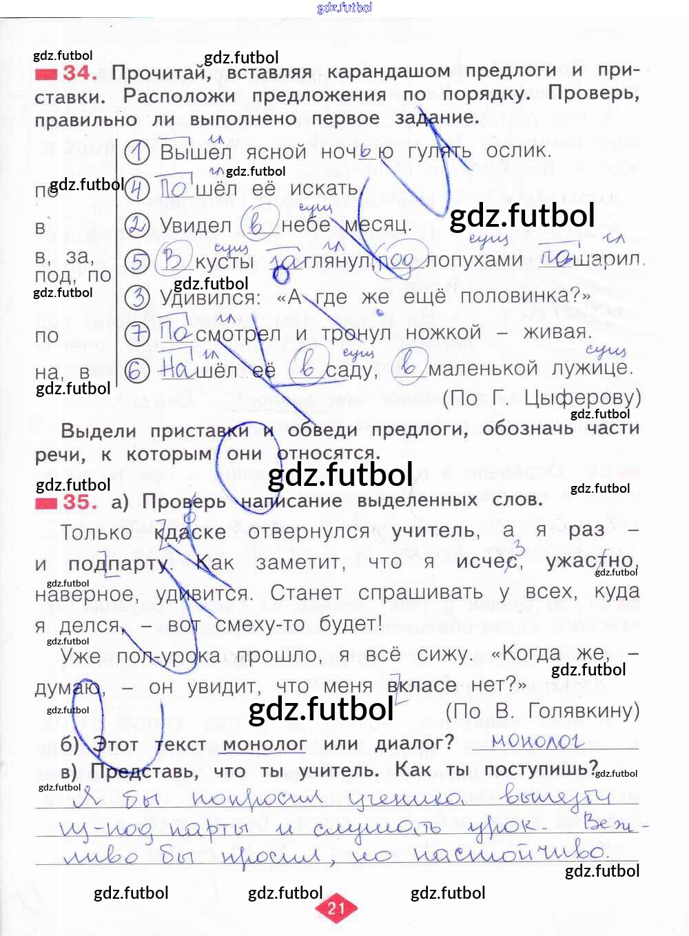 Готовые домашние задания по Русскому языку за 2 класс Яковлева Рабочая тетрадь 2015 ФГОС - Часть 3. Страницы 21