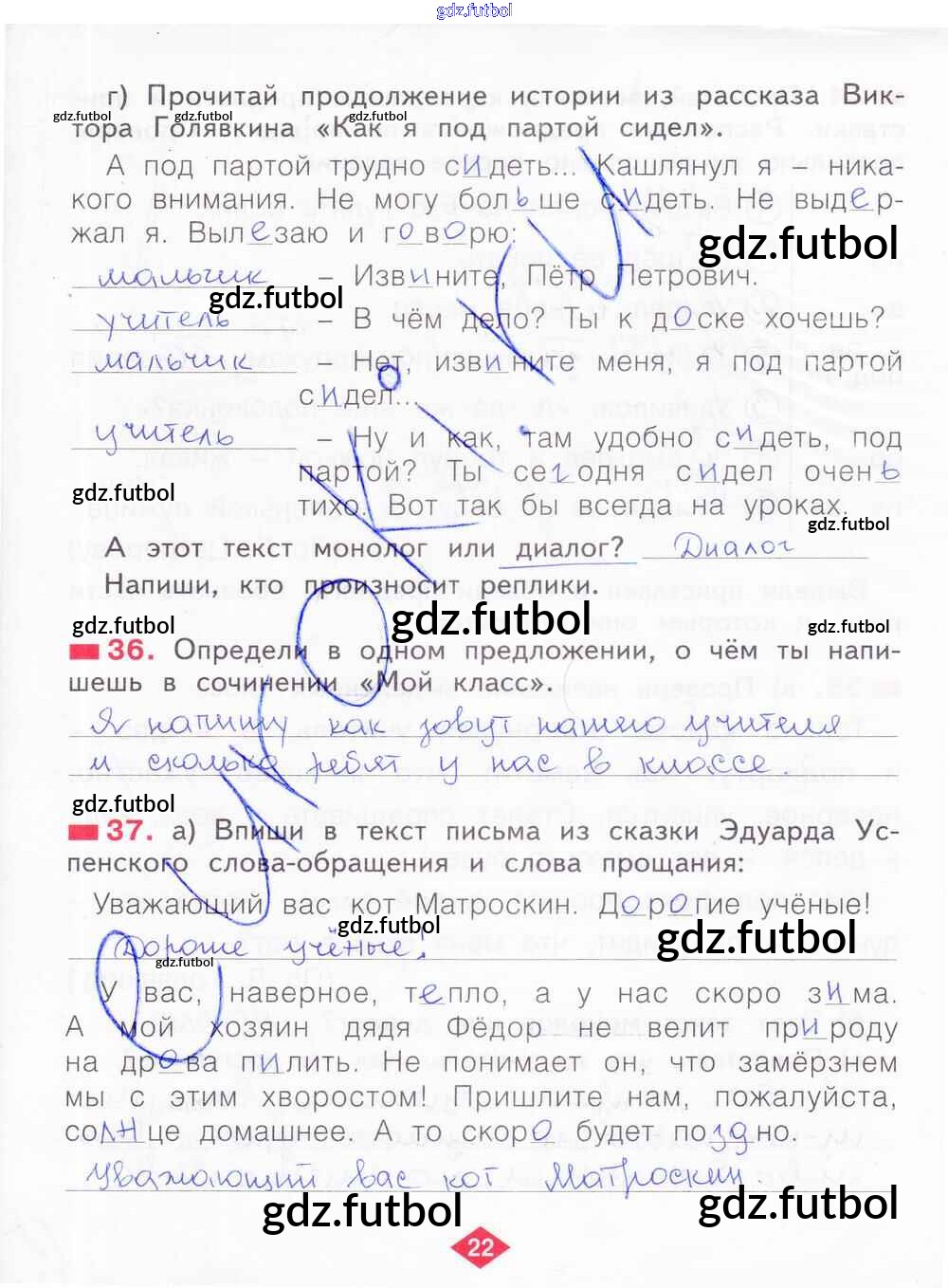 Готовые домашние задания по Русскому языку за 2 класс Яковлева Рабочая тетрадь 2015 ФГОС - Часть 3. Страницы 22