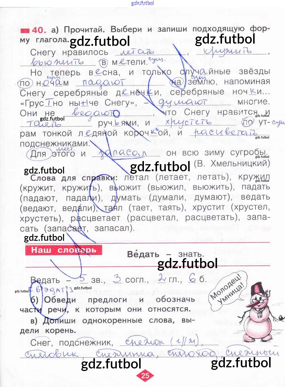 Готовые домашние задания по Русскому языку за 2 класс Яковлева Рабочая тетрадь 2015 ФГОС - Часть 3. Страницы 25