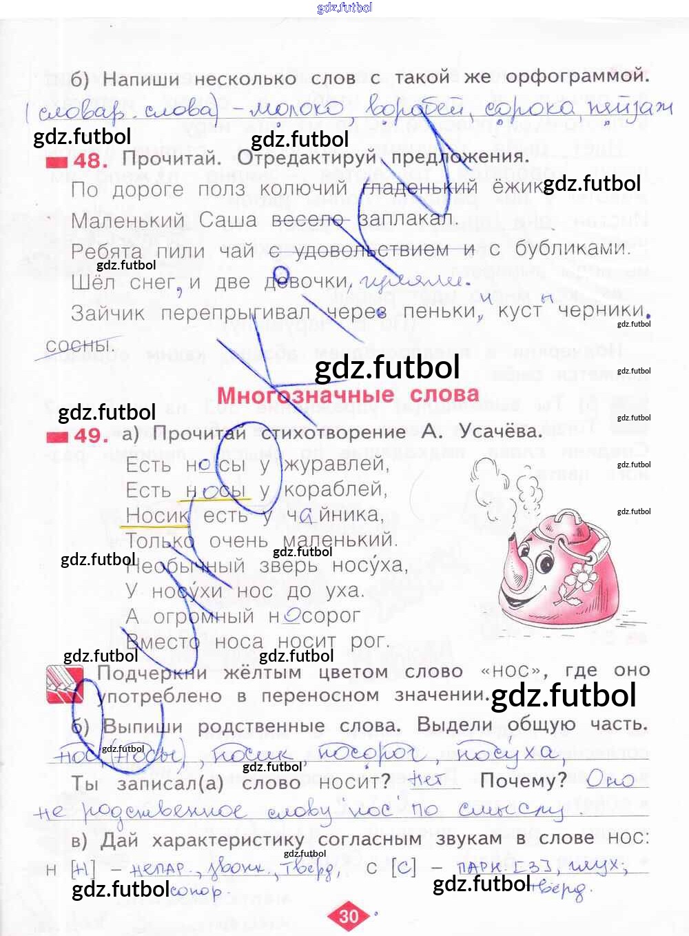 Готовые домашние задания по Русскому языку за 2 класс Яковлева Рабочая тетрадь 2015 ФГОС - Часть 3. Страницы 30