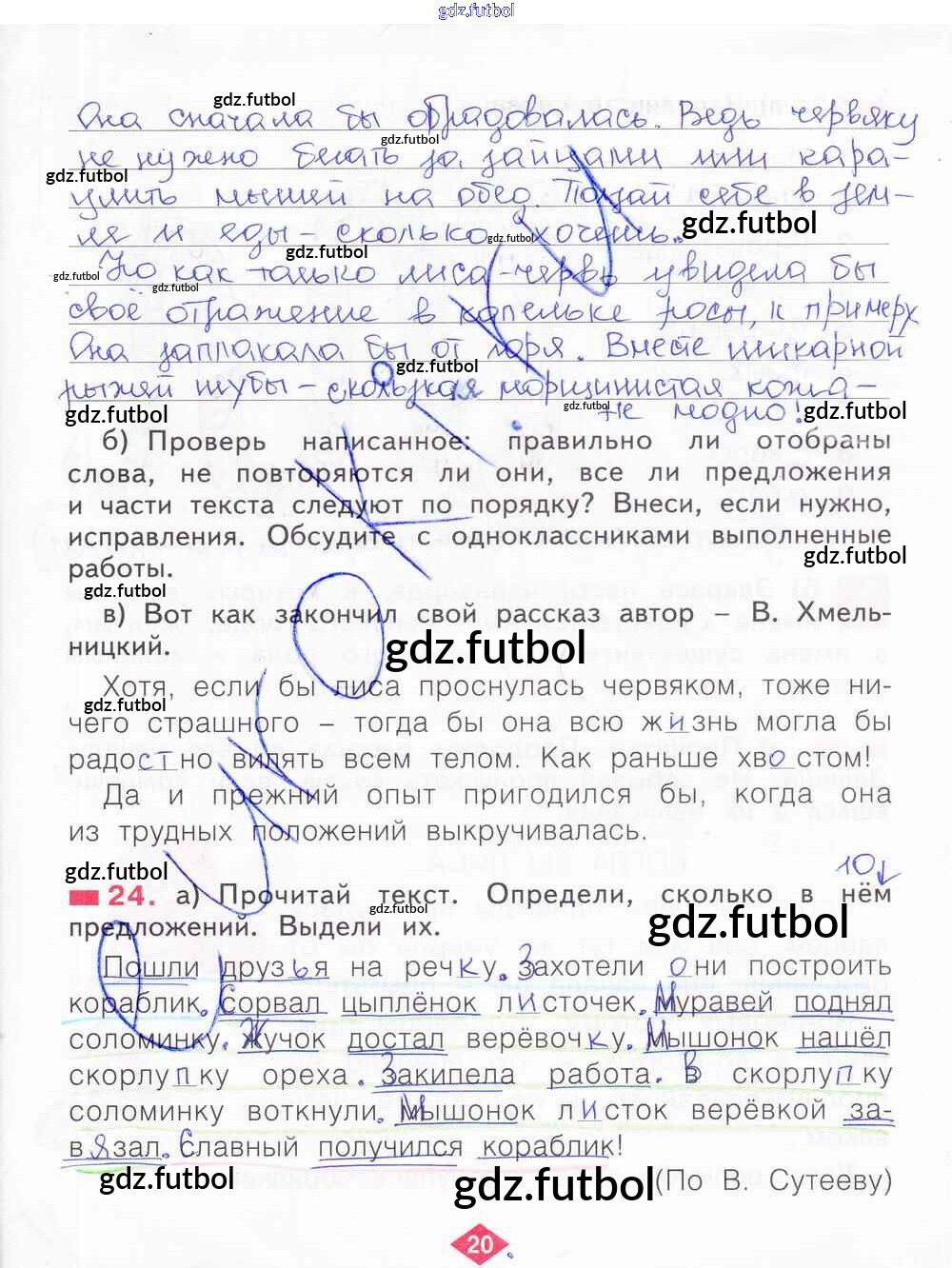 Готовые домашние задания по Русскому языку за 2 класс Яковлева Рабочая тетрадь 2015 ФГОС - Часть 4. Страницы 20