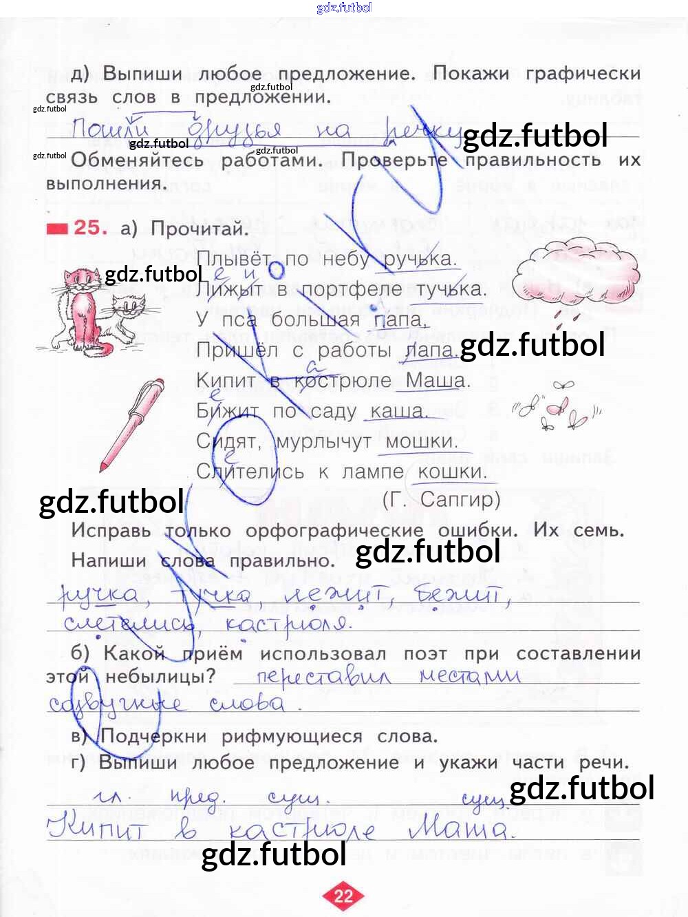 Готовые домашние задания по Русскому языку за 2 класс Яковлева Рабочая тетрадь 2015 ФГОС - Часть 4. Страницы 22