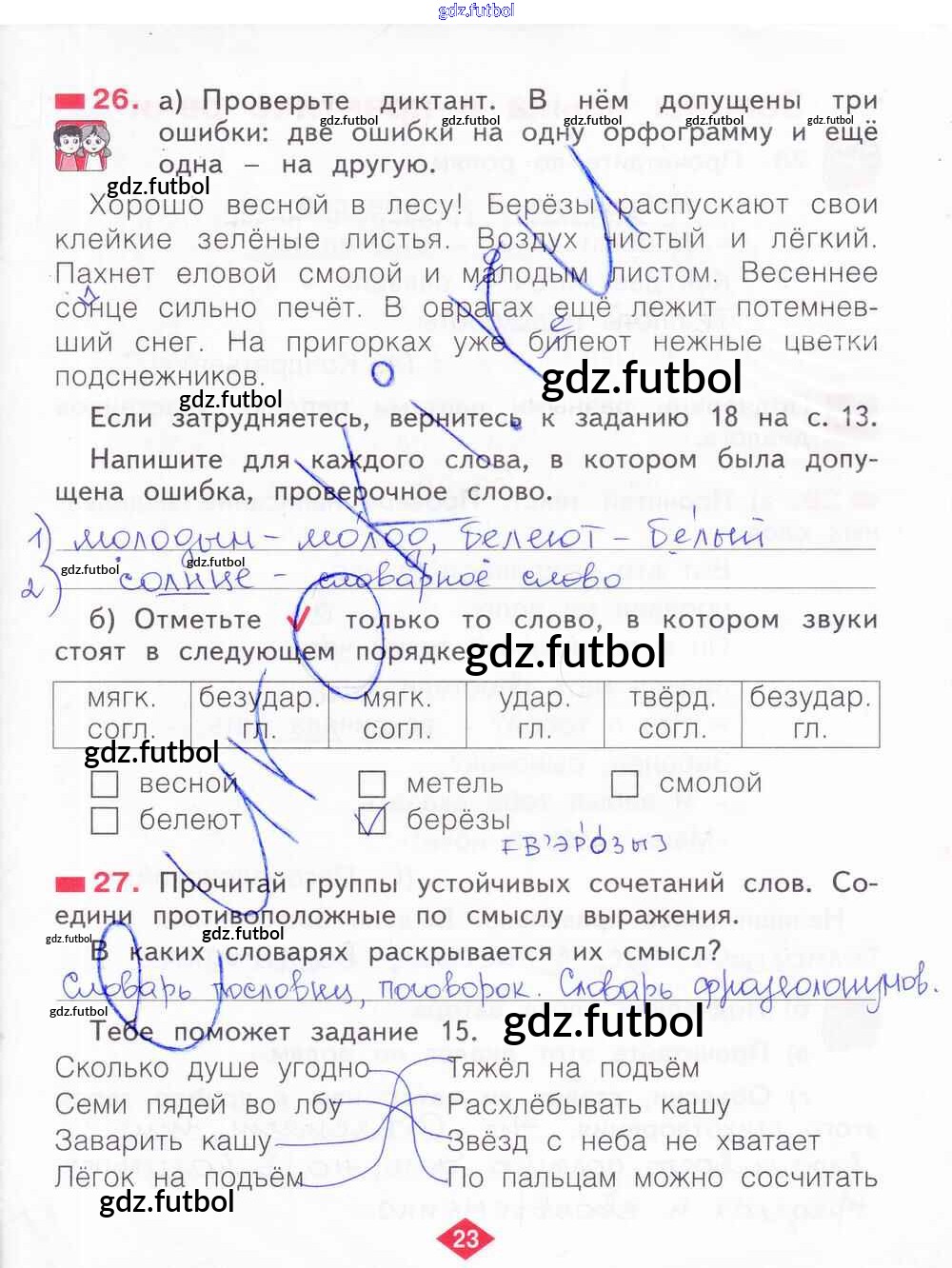 Готовые домашние задания по Русскому языку за 2 класс Яковлева Рабочая тетрадь 2015 ФГОС - Часть 4. Страницы 23