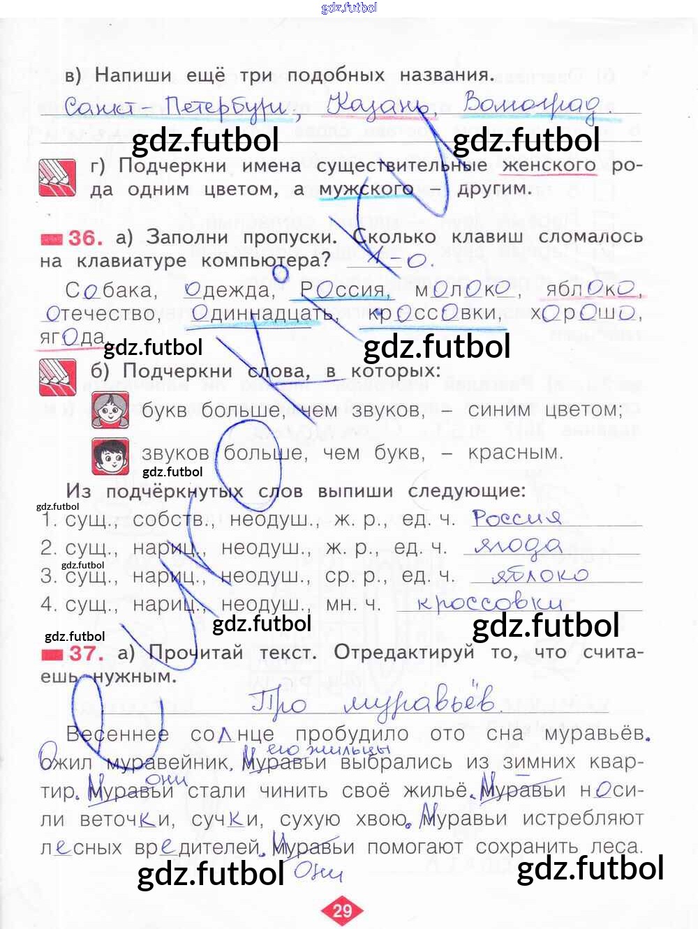 Готовые домашние задания по Русскому языку за 2 класс Яковлева Рабочая тетрадь 2015 ФГОС - Часть 4. Страницы 29