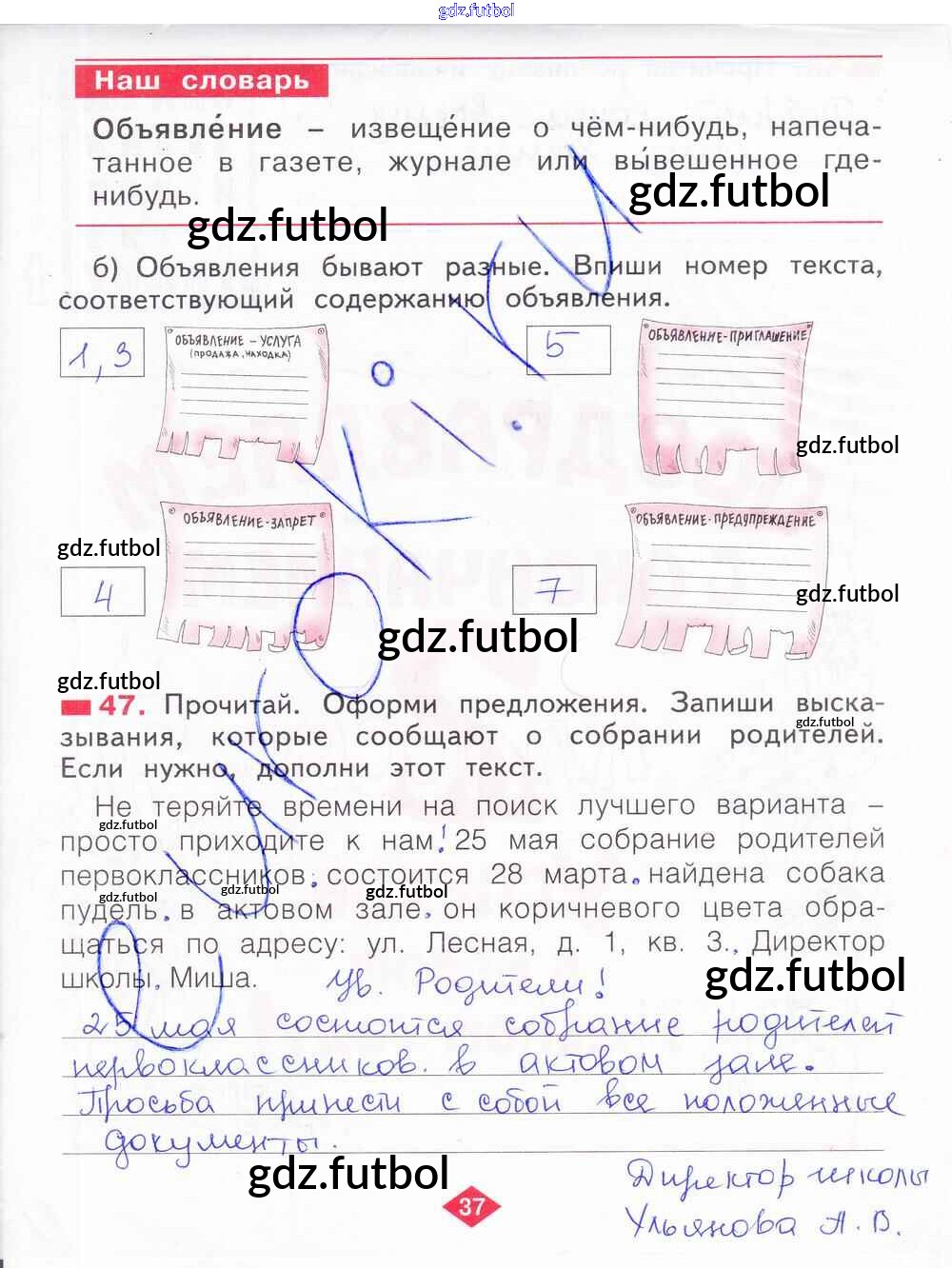 Готовые домашние задания по Русскому языку за 2 класс Яковлева Рабочая тетрадь 2015 ФГОС - Часть 4. Страницы 37