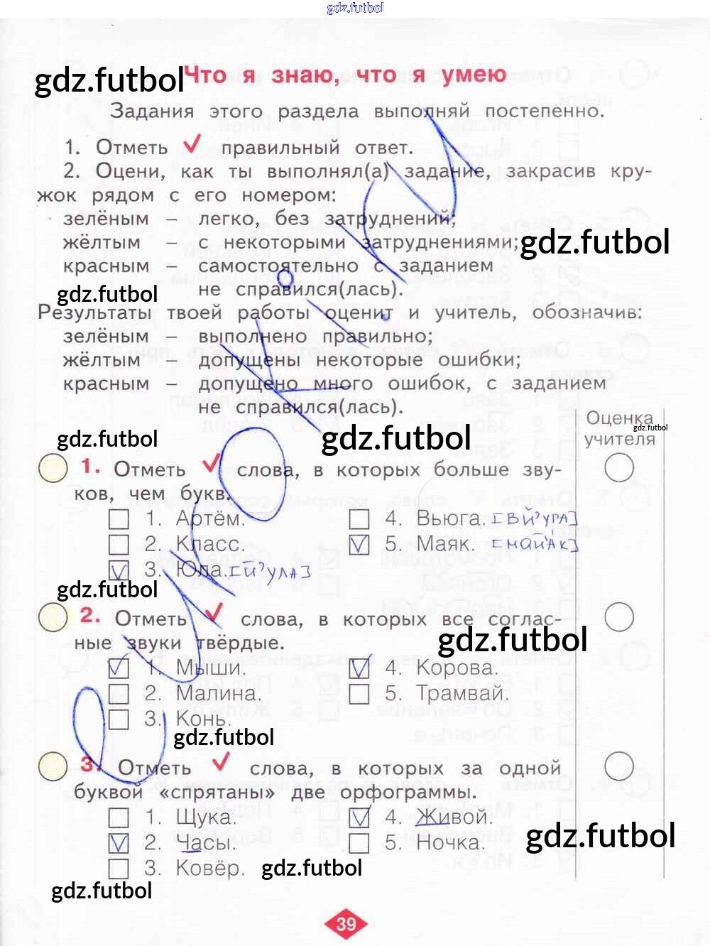 Готовые домашние задания по Русскому языку за 2 класс Яковлева Рабочая тетрадь 2015 ФГОС - Часть 4. Страницы 39