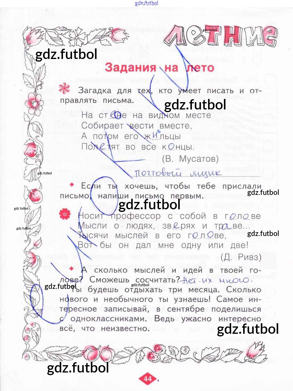 Готовые домашние задания по Русскому языку за 2 класс Яковлева Рабочая тетрадь 2015 ФГОС - Часть 4. Страницы 44