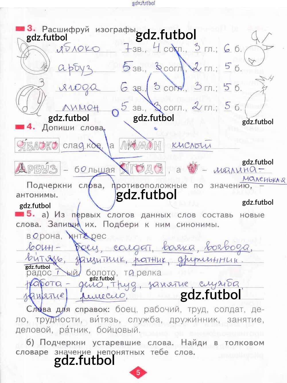 Готовые домашние задания по Русскому языку за 2 класс Яковлева Рабочая тетрадь 2015 ФГОС - Часть 4. Страницы 5