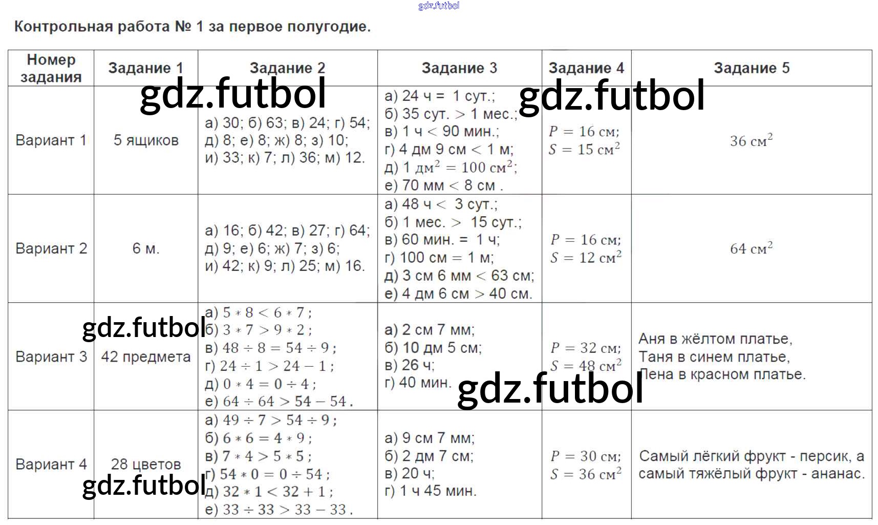 Готовые домашние задания по Математике за 3 класс Ситникова Контрольно-измерительные материалы (КИМ) 2017 ФГОС - Контрольные работы 1