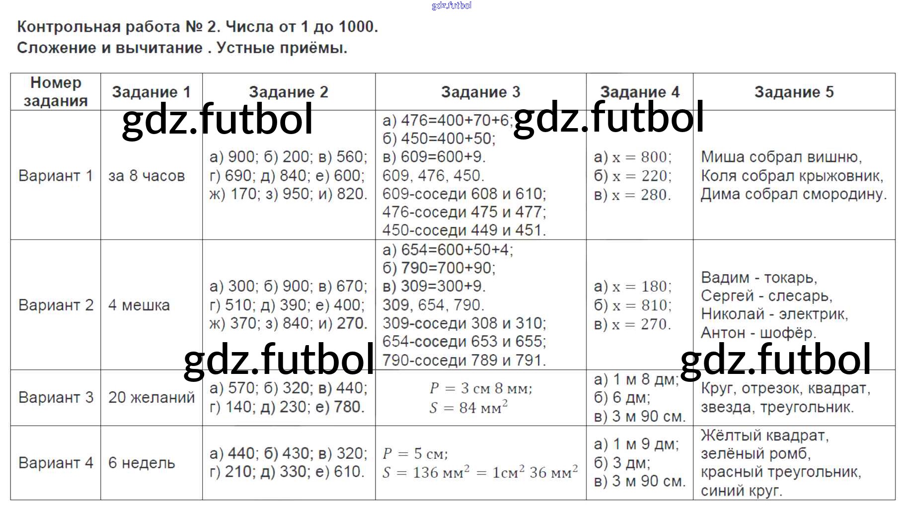 Готовые домашние задания по Математике за 3 класс Ситникова Контрольно-измерительные материалы (КИМ) 2017 ФГОС - Контрольные работы 2