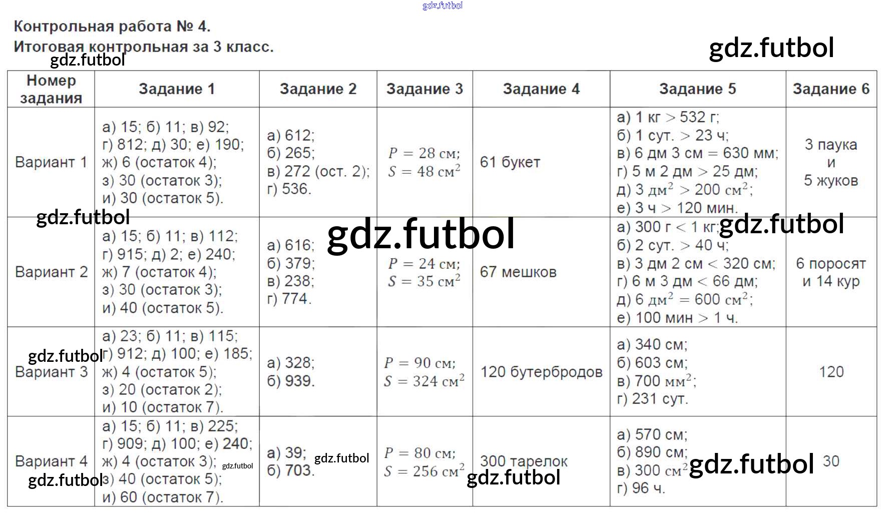 Готовые домашние задания по Математике за 3 класс Ситникова Контрольно-измерительные материалы (КИМ) 2017 ФГОС - Контрольные работы 4