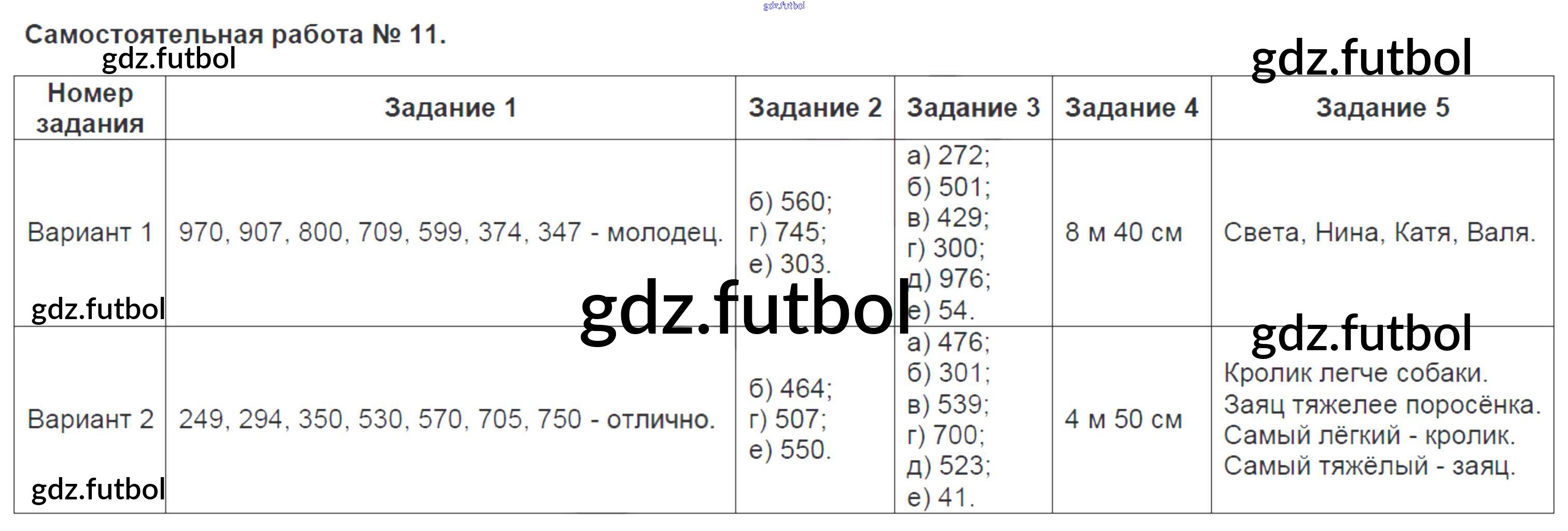 Готовые домашние задания по Математике за 3 класс Ситникова Контрольно-измерительные материалы (КИМ) 2017 ФГОС - Самостоятельные работы 11