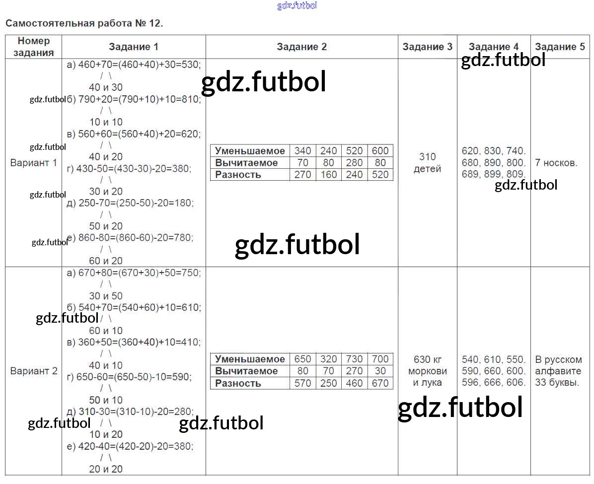 Готовые домашние задания по Математике за 3 класс Ситникова Контрольно-измерительные материалы (КИМ) 2017 ФГОС - Самостоятельные работы 12