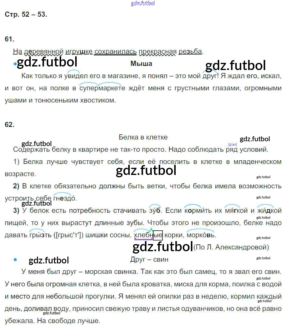 Готовые домашние задания по Русскому языку за 3 класс Рамзаева Рабочая тетрадь 2020 ФГОС - Часть 1. Страницы 52