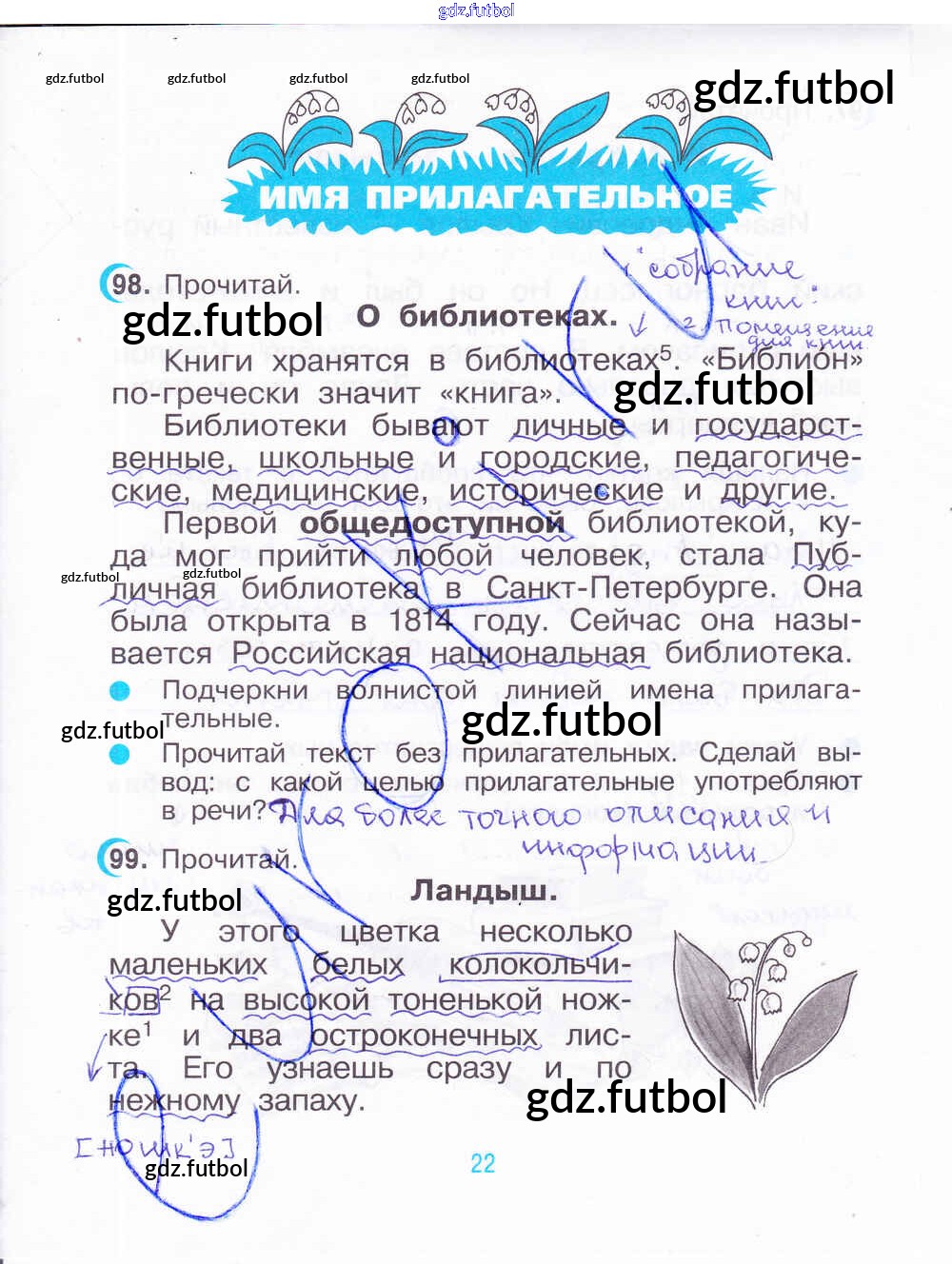 Готовые домашние задания по Русскому языку за 3 класс Рамзаева Рабочая тетрадь 2020 ФГОС - Часть 2. Страницы 22