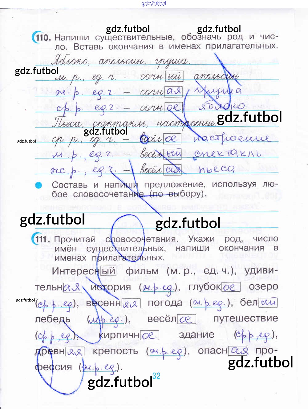 Готовые домашние задания по Русскому языку за 3 класс Рамзаева Рабочая тетрадь 2020 ФГОС - Часть 2. Страницы 32