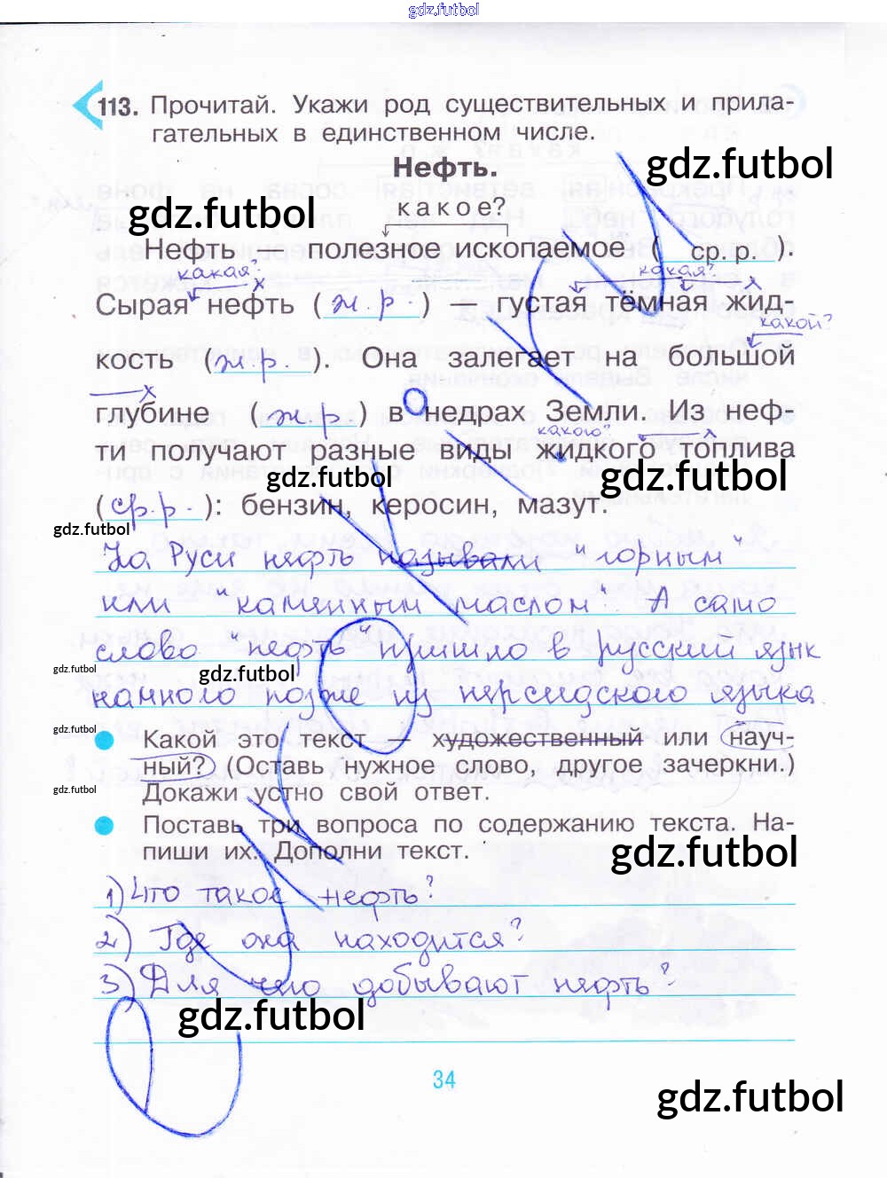 Готовые домашние задания по Русскому языку за 3 класс Рамзаева Рабочая тетрадь 2020 ФГОС - Часть 2. Страницы 34