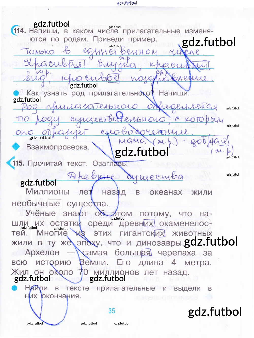 Готовые домашние задания по Русскому языку за 3 класс Рамзаева Рабочая тетрадь 2020 ФГОС - Часть 2. Страницы 35