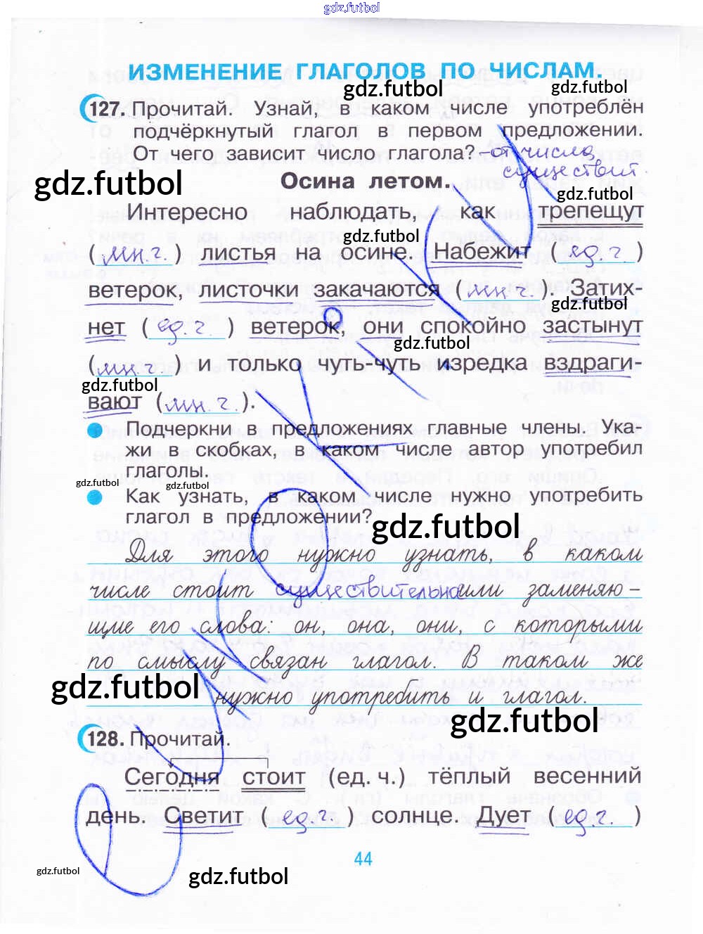 Готовые домашние задания по Русскому языку за 3 класс Рамзаева Рабочая тетрадь 2020 ФГОС - Часть 2. Страницы 44