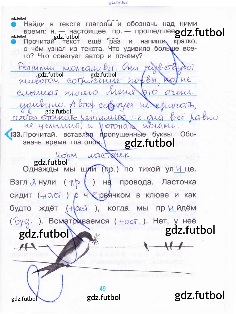 Готовые домашние задания по Русскому языку за 3 класс Рамзаева Рабочая тетрадь 2020 ФГОС - Часть 2. Страницы 49