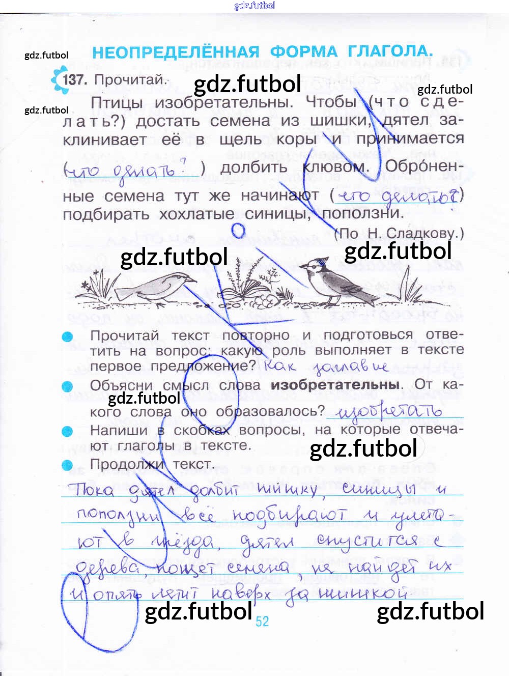 Готовые домашние задания по Русскому языку за 3 класс Рамзаева Рабочая тетрадь 2020 ФГОС - Часть 2. Страницы 52