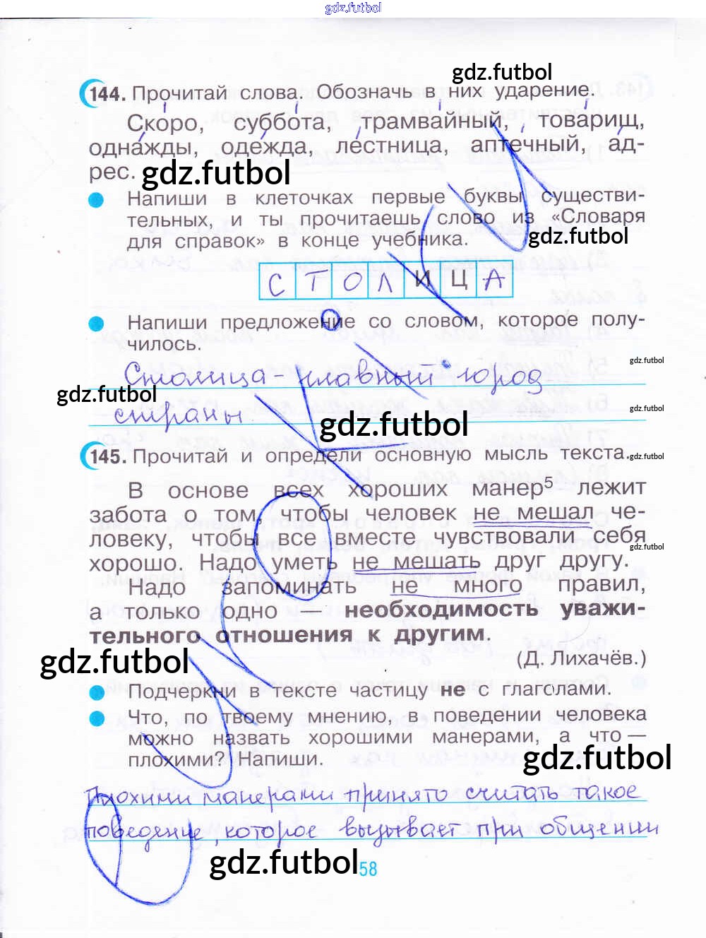 Готовые домашние задания по Русскому языку за 3 класс Рамзаева Рабочая тетрадь 2020 ФГОС - Часть 2. Страницы 58