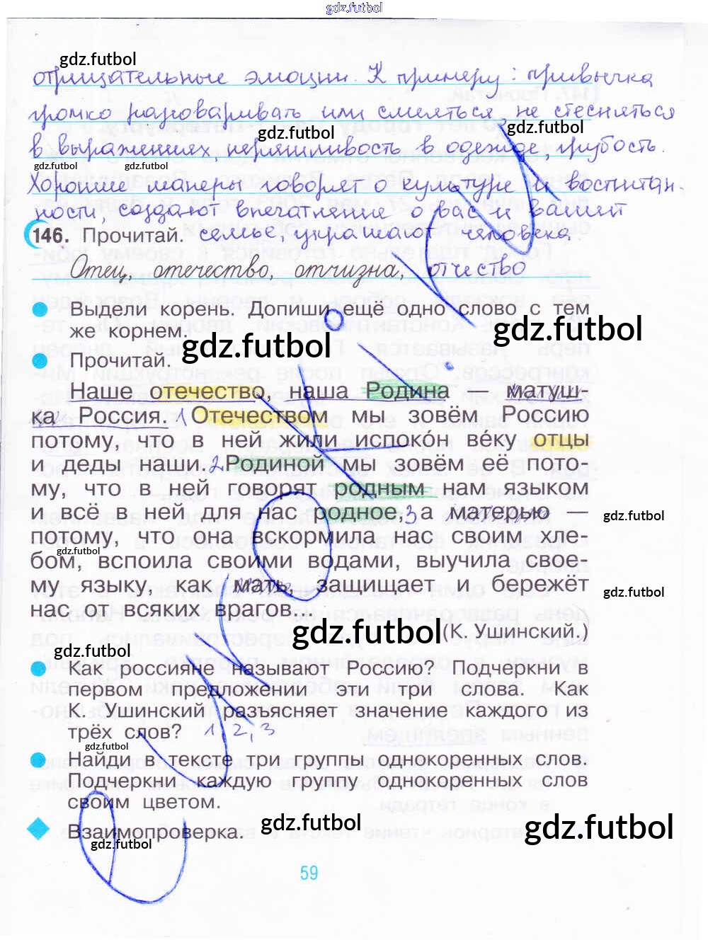 Готовые домашние задания по Русскому языку за 3 класс Рамзаева Рабочая тетрадь 2020 ФГОС - Часть 2. Страницы 59