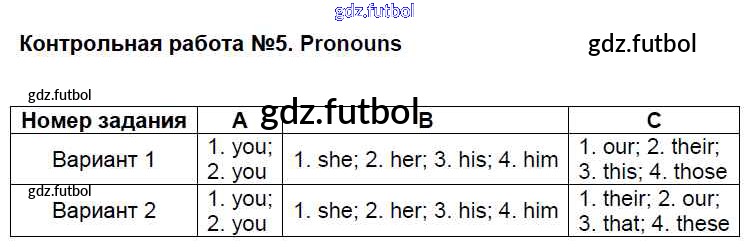 Готовые домашние задания по Английскому языку за 4 класс Кулинич Контрольно-измерительные материалы (КИМ) 2018 ФГОС - Контрольные работы КР №5. Pronouns