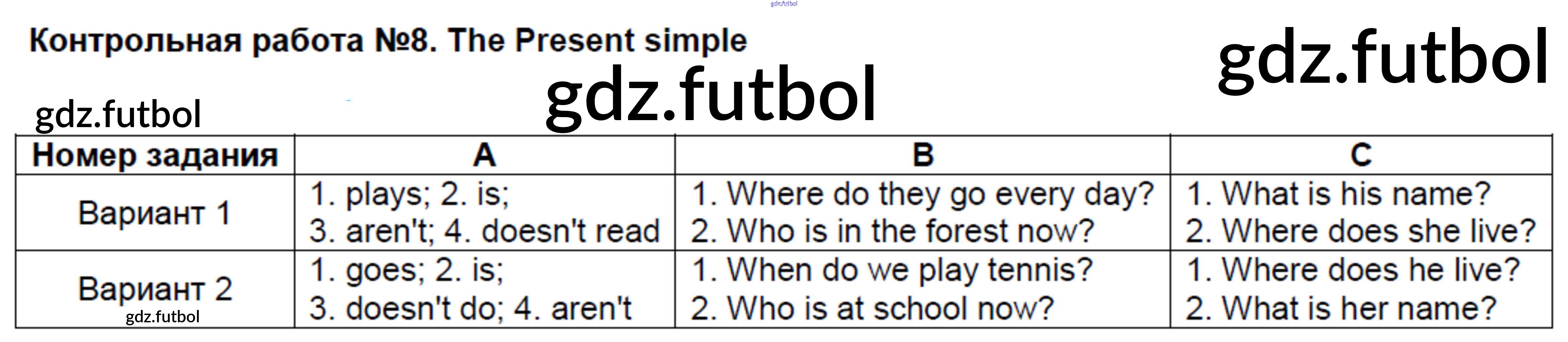 Готовые домашние задания по Английскому языку за 4 класс Кулинич Контрольно-измерительные материалы (КИМ) 2018 ФГОС - Контрольные работы КР №8. The Present simple