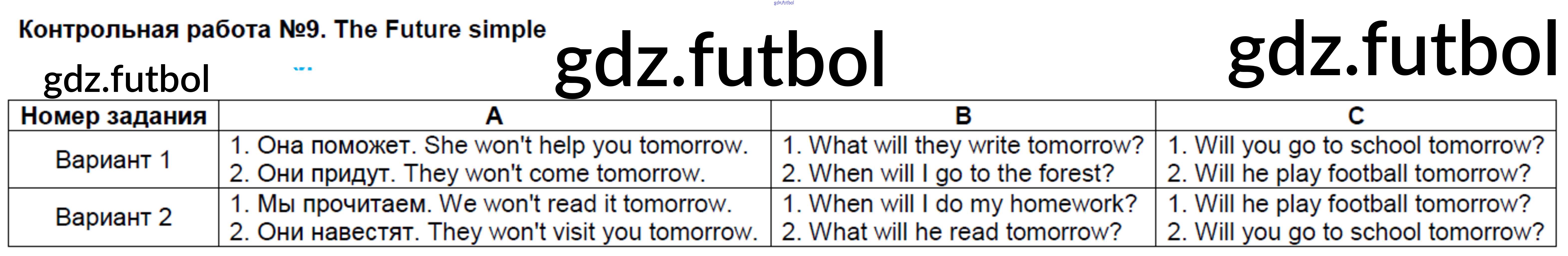 Готовые домашние задания по Английскому языку за 4 класс Кулинич Контрольно-измерительные материалы (КИМ) 2018 ФГОС - Контрольные работы КР №9. The Future simple