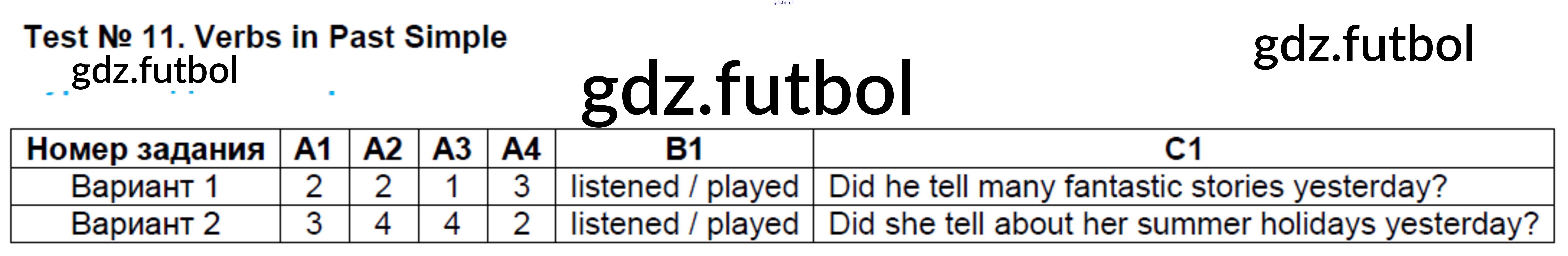 Готовые домашние задания по Английскому языку за 4 класс Кулинич Контрольно-измерительные материалы (КИМ) 2018 ФГОС - Тесты Тест №11. Verbs in Past Simple