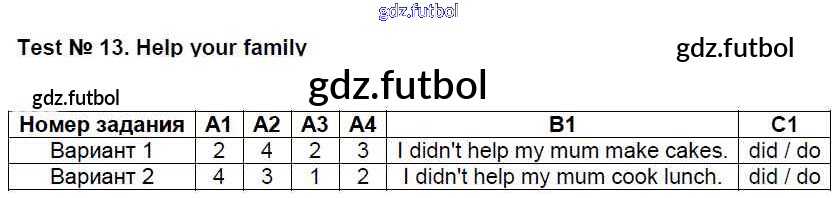 Готовые домашние задания по Английскому языку за 4 класс Кулинич Контрольно-измерительные материалы (КИМ) 2018 ФГОС - Тесты Тест №13. Help your family