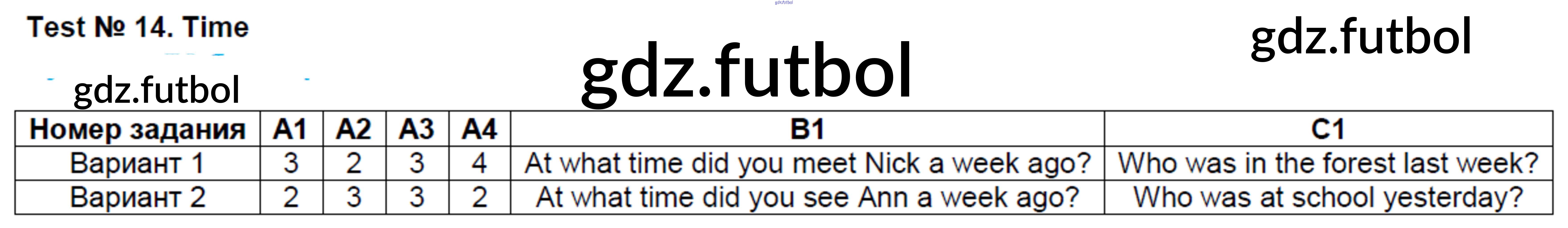 Готовые домашние задания по Английскому языку за 4 класс Кулинич Контрольно-измерительные материалы (КИМ) 2018 ФГОС - Тесты Тест №14. Time