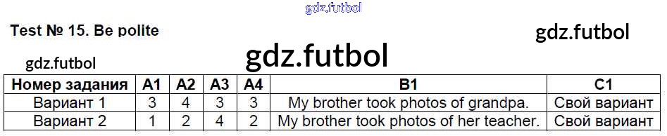 Готовые домашние задания по Английскому языку за 4 класс Кулинич Контрольно-измерительные материалы (КИМ) 2018 ФГОС - Тесты Тест №15. Be polite