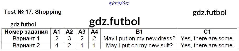 Готовые домашние задания по Английскому языку за 4 класс Кулинич Контрольно-измерительные материалы (КИМ) 2018 ФГОС - Тесты Тест №17. Shopping