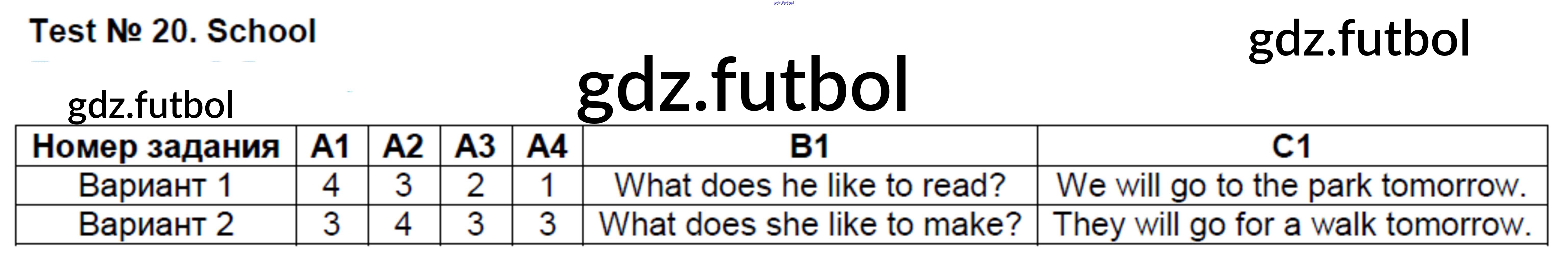 Готовые домашние задания по Английскому языку за 4 класс Кулинич Контрольно-измерительные материалы (КИМ) 2018 ФГОС - Тесты Тест №20. School