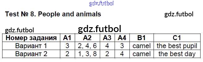 Готовые домашние задания по Английскому языку за 4 класс Кулинич Контрольно-измерительные материалы (КИМ) 2018 ФГОС - Тесты Тест №8. People and animals