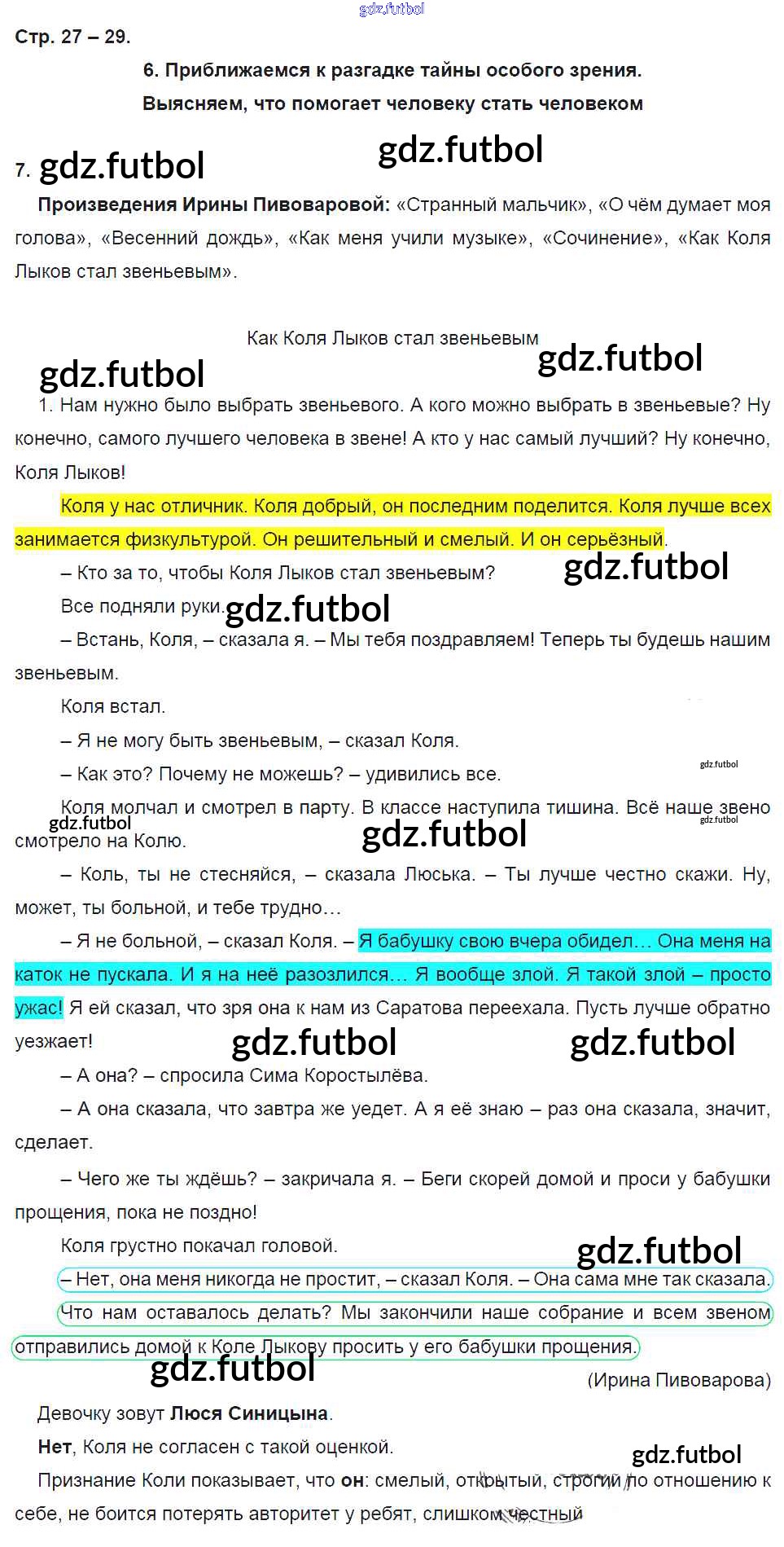Готовые домашние задания по Литературе за 4 класс Чуракова Тетрадь для самостоятельной работы УМК 2019 ФГОС - Часть 2. Страницы 27